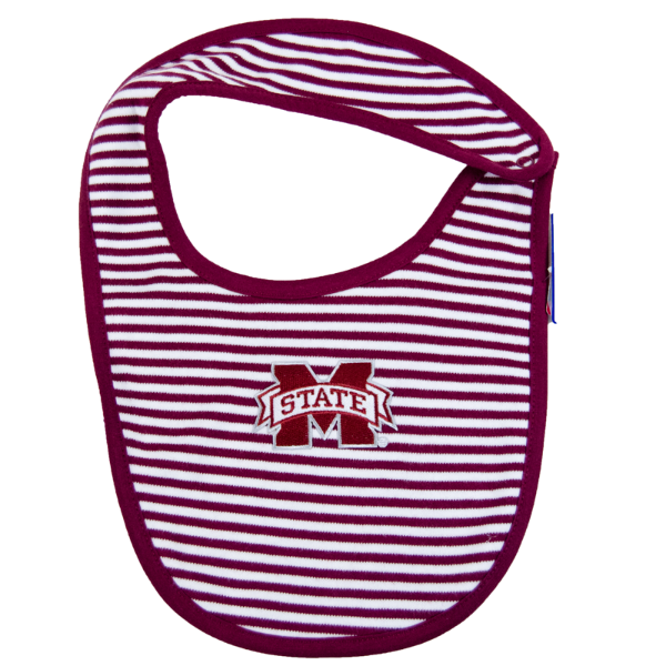 Infant Striped MState Bib with Maroon Trim